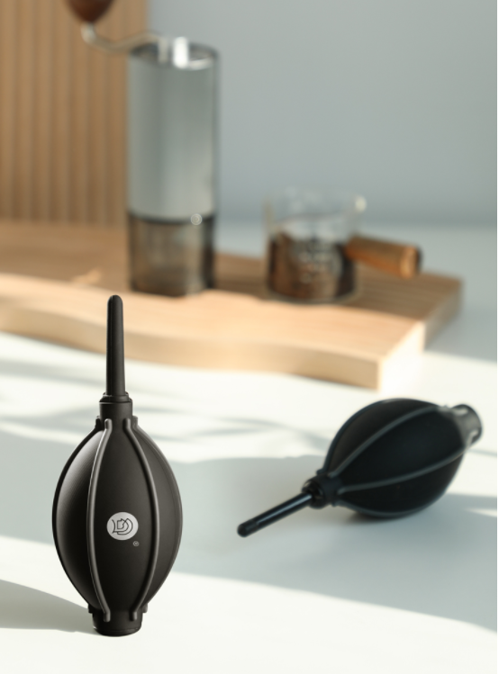 Our new product air blower is launching and it is the strongest CP combination of the coffee bean grinder. It is with small body and big hurricane and it can be lightly pressed to remove residual powder.